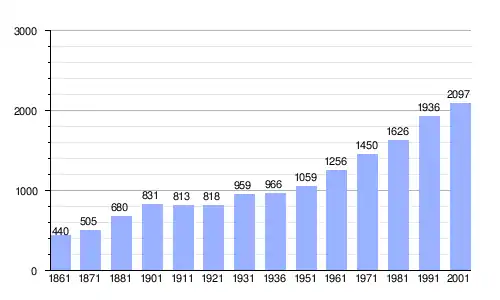| Gráfica de evolución demográfica de Oltrona di San Mamette entre 1861 y 2001 |