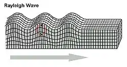 Las ondas de Rayleigh son un tipo de onda de superficie que se desplaza cerca de la superficie de los sólidos. Las ondas de Rayleigh incluyen movimientos longitudinales y transversales cuya amplitud disminuye exponencialmente a medida que aumenta la distancia desde la superficie. Hay una diferencia de fase entre estos componentes del movimiento.[1]