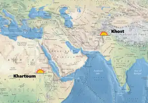 La Jihad Islámica Egipcia y el Grupo Islámico Armado de Argelia también utilizaron los campos de Khost, así como grupos militantes paquistaníes que luchaban contra una insurgencia en Cachemira, como Harkat Ansar, Lashkar-e-Toiba y Hizbul Mujahideen.[14][21] Los campos rudimentarios, supuestamente dirigidos por el funcionario talibán Jalaluddin Haqqani,[22] eran frecuentados por militantes árabes, chechenos y de Asia Central, así como por el ISI.[23] Los misiles impactaron aproximadamente a las 10:00 p. m., hora de Khost (17:30 GMT). Al igual que en Sudán, los ataques se lanzaron de noche para evitar daños colaterales.[14] En contraste con el ataque a Al-Shifa, el ataque a los campamentos afganos no provocó una polémica internacional.[24][25]