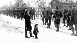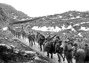 ![]() Soldados de la 12.º Brigada de Infantería de Marina en marcha a través de la cresta de Mustatunturi | ||||