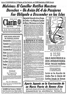 - «Falklands and the “unwelcome visits from (Argentine) aircraft”» (Malvinas y las inesperadas visitas del avión argentino’), historia de los vuelos argentinos a las islas Malvinas; artículo (en inglés) del 13 de septiembre de 2014 en el sitio web MercoPress.