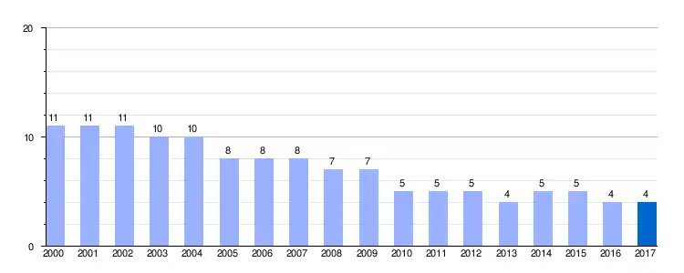 | Gráfica de evolución demográfica de Orbañanos entre 2000 y 2017 |