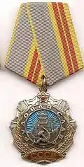 ![]() Anverso de la Orden de la Gloria Laboral de 1.er grado | ||