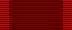 La cinta de la orden es de seda, color burdeos muaré con rayas rojas longitudinales: