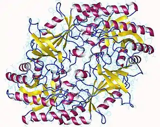 La enzima ornitina descarboxilasa (ODC) participa en el ciclo de la urea y en el metabolismo del glutatión y de grupos aminos. En los seres humanos, esta proteína tiene 461 aminoácidos y la forma un homodímero.