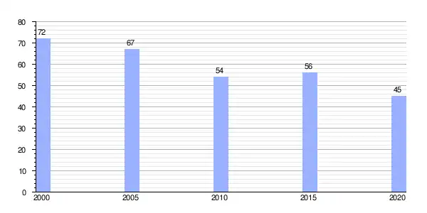 | Gráfica de evolución demográfica de Orol (parroquia) entre 2000 y 2020 |