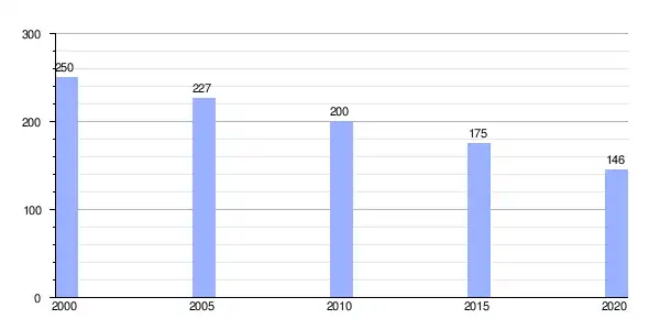 | Gráfica de evolución demográfica de Ourol (aldea) entre 2000 y 2020 |