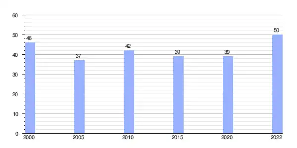 | Gráfica de evolución demográfica de Orosa (parroquia) entre 2000 y 2022 |