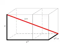 Un ortoedro áureo es un ortoedro en el que sus lados tienen las dimensiones de los segmentos de las proporciones áureas, esto es: Dando a una de las dimensiones el valor de la unidad: 1, la otra tendría el valor de φ, y la otra de la suma de las dos, φ + 1.