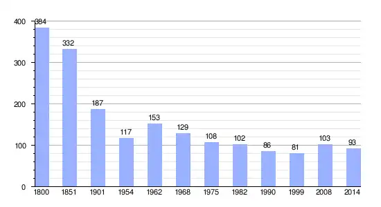 | Gráfica de evolución demográfica de Orville entre 1800 y 2014 |