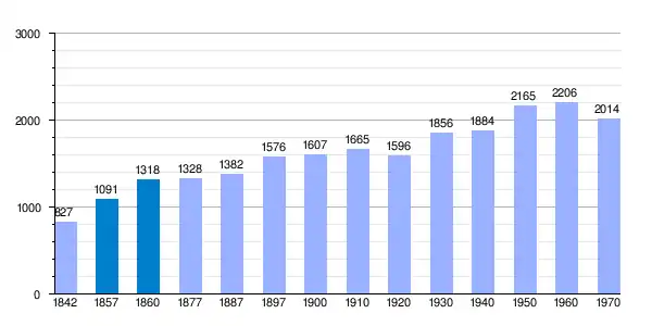 | Gráfica de evolución demográfica de Osorno[6] entre 1842 y 1970 |