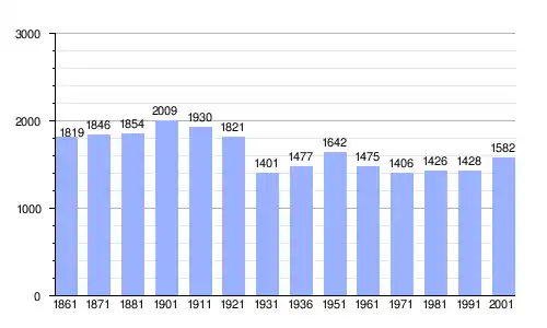 | Gráfica de evolución demográfica de Ospedaletto Lodigiano entre 1861 y 2001 |