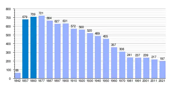 | Gráfica de evolución demográfica de Ossó de Sió[2] entre 1842 y 2021 |
