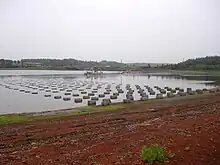 Otras fuentes afirman que una sola ostra puede filtrar de 24 a 96 litros por día (1 a 4 litros por hora).[22] Con 750 000 ostras en un acre, se pueden filtrar entre 18 000 000 y 72 000 000 litros de agua, eliminando la mayoría de las partículas suspendidas en la columna de agua. Las partículas que eliminan las ostras son arena, arcilla, limo, detritos y fitoplancton.[22] Es posible que todas estas partículas contengan contaminación dañina que se origina en fuentes antropogénicas.[23] En lugar de ser ingeridos por otros organismos filtradores que luego son digeridos por organismos más grandes, las ostras pueden secuestrar estos contaminantes posiblemente dañinos y excretarlos para depositarlos en los sedimentos acumulados el fondo de las vías fluviales.[22] Para eliminar estos contaminantes del sedimento, se pueden agregar especies de algas marinas que los absorben en sus tejidos, que podrían eliminarse y llevarse a un área controlada donde la contaminación no resulte dañina para el medio ambiente circundante.[24] Más recientemente, se ha propuesto el cultivo a gran escala de ostras y otros mariscos como método para combatir el cambio climático, porque el crecimiento de la concha de la ostra secuestra dióxido de carbono atmosférico para formar carbonato cálcico, un compuesto estable a escala geológica.[25][26][27][28] En los Estados Unidos, el cultivo de ostras del Pacífico en áreas de marea supone la mejora de la calidad de las aguas costeras. Está sometido a normas y regulaciones federales, mediante las que se supervisan la seguridad del medio ambiente y los efectos sobre la salud de los seres humanos.[29] Carlsbad Aquafarm, ubicada en el sur de California, está cultivando ostras del Pacífico mediante el uso de balsas y bandejas para optimizar la producción, y opera cerca de una moderna planta desalinizadora.[30] Las nuevas normas y políticas de impacto ambiental adoptadas fueron creadas y actualizadas por la Agencia de Protección Ambiental de Estados Unidos (EPA), que aprobó la ubicación y construcción de la Planta Desalinizadora Claude Lewis Carlsbad a través de la Ley Federal de Agua Limpia el 7 de abril de 2016, cuyo enfoque principal fue minimizar el impacto ambiental junto con la actividad de acuicultura desarrollada por la Carlsbad Aquafarm.[31] Las solicitudes y los permisos para proyectos de acuicultura como Avalon Ocean Farm se hacen públicos y deben seguir las mismas pautas de la EPA y de la Ley del Agua Limpia. La calidad del agua, los mamíferos marinos (incluidas especies en peligro de extinción) y las evaluaciones de impacto ambiental previstas se enumeran en la descripción del proyecto para minimizar, gestionar y mitigar su impacto ambiental.[32]