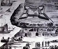 Llegaron cerca de la villa de Accada el 27 de diciembre de 1682, hizaron la bandera de Brandeburgo el 1 de enero de 1683 cerca de la moderna Princes Town y empezaron la construcción de una fortificación, que fue llamada Fuerte Groß Friedrichsburg. El 5 de enero de 1683, el tratado con los Ahanta fue renovado.