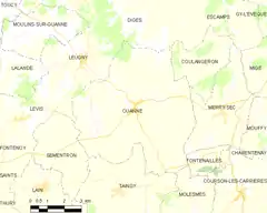 - Situación de Ouanne en un mapa de Francia y de comunas limítrofes (en francés)