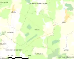 Oudan es una población y comuna francesa, situada en la región de Borgoña, departamento de Nièvre, en el distrito de Clamecy y cantón de Varzy.