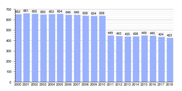 | Gráfica de evolución demográfica de Oural entre 2000 y 2018 |