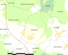 - Situación de Oussières en un mapa de Francia y de comunas limítrofes (enlace roto disponible en Internet Archive; véase el historial, la primera versión y la última). (en francés)