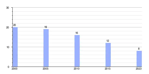 | Gráfica de evolución demográfica de Outeiro entre 2000 y 2023 |