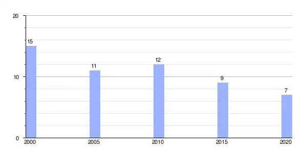 | Gráfica de evolución demográfica de Ouviaño (aldea) entre 2000 y 2020 |