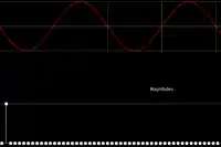 El componente de la izquierda del espectro corresponde a una frecuencia de 0 Hz o componente de continua (Offset), seguido del primer armónico o frecuencia fundamental.