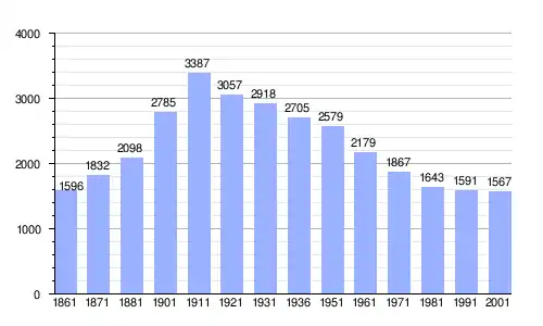 | Gráfica de evolución demográfica de Ozzano Monferrato entre 1861 y 2001 |