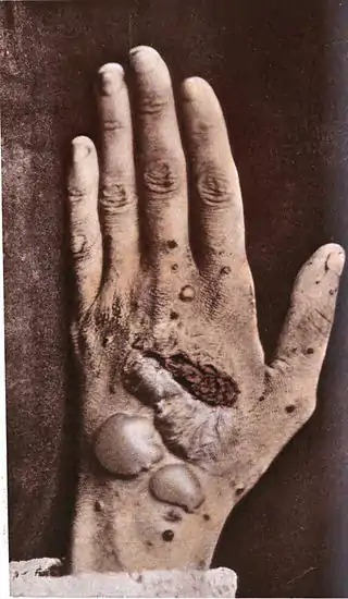 La enfermedad no tratada lleva a la muerte que se produce por caquexia, por complicaciones pulmonares y a veces también renales. Paradójicamente, en la fase terminal de la enfermedad, las afecciones cutáneas mejoran y precisamente esta mejoría anuncia la muerte inminente.[1]