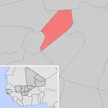 Se encuentra ubicada en el centro-este del país, cerca de la frontera con Burkina Faso y con la región de Tombuctú.