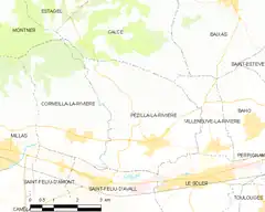 - Localización de Pézilla-la-Rivière en un mapa de Francia y comunas limítrofes (enlace roto disponible en Internet Archive; véase el historial, la primera versión y la última).