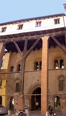 Un ejempio famosísimo es Casa Isolani en Strada Maggiore. El pórtico, sostenido por altísimas vigas de madera (9 metros de altura) fue construido alrededor de 1250. Se trata de uno de los pocos ejemplares de construcción civil boloñesa del siglo XIII que han sobrevivido a lo largo de los siglos; el estilo es románico - gótico; las vigas son de roble y sostienen el soportal del tercer piso del edificio. Otros ejemplos, quizás menos famosos, son los pórticos de Palacio Grassi Archivado el 31 de julio de 2013 en Wayback Machine., en vía Marsala y los de Casa Reggiani. Aunque no esté construido con madera, el pórtico del Palacio del Podestà, en la Plaza Mayor, es otro bonito ejemplar de esa época; es famoso por el efecto acústico de sus bóvedas y la decoración de sus columnas en arenisca con motivos floreales, todos diferentes entre ellos.