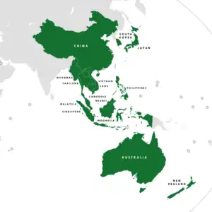 La Asociación Económica Integral Regional (abreviado RCEP por sus siglas en inglés) es un acuerdo de libre comercio (TLC) entre los diez Estados miembros de la Asociación de Naciones del Sudeste Asiático (ASEAN) (Myanmar, Brunéi, Camboya, Filipinas, Indonesia, Laos, Malasia, Singapur, Tailandia y Vietnam) y cinco estados de Asia y Oceanía con los que la ASEAN tiene acuerdos de libre comercio existentes (Australia, China, Corea del Sur, Japón y Nueva Zelanda). El tratado fue firmado en la Cumbre de la ASEAN del 15 de noviembre de 2020[1][2] y luego de la ratificación de Filipinas entró en vigencia para todos los estados participantes el 2 de junio de 2023[3].