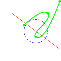 \pscircle[linecolor=blue,linestyle=dashed](3,2.5){1}