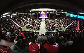 ![]() Interior del pabellón durante la celebración de un mitin político | ||