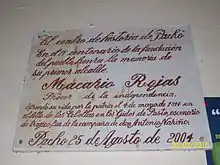 Para destacar el valor de nuestro primer alcalde y su patriotismo, el Centro de Historia de Pacho coloca una placa en la Casa de Gobierno que será develada el 25 de agosto de 2004 con motivo de la celebración del cuarto centenario de nuestra fundación. La placa dice así: “El Centro de Historia de Pacho, en el IV Centenario de la fundación del pueblo, honra la memoria de su primer alcalde Macario Rojas, Prócer de la independencia. Ofrendó su vida por la Patria el 8 de mayo de 1814 en el Alto de las Cebollas en los Ejidos de Pasto, escenario del trágico fin de la Campaña de don Antonio Nariño. Pacho, 25 de agosto de 2004.