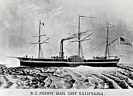 - SS California (1848–1866, 1872–1874): Construido para la compañía, fue lanzado el 19 de mayo de 1848 por William H. Webb en Nueva York. Salió de Nueva York el 6 de octubre de 1848 para Valparaíso, Ciudad de Panamá y San Francisco y luego operó entre San Francisco y Panamá regularmente hasta 1854. Fue usada como empacadora de repuesto en San Francisco en 1856 y en la ciudad de Panamá en 1857. Hizo viajes de San Francisco a la ciudad de Panamá para Pacific Mail en 1860, 1861 y 1866 y más tarde se vendió a la Compañía de Administración de California, Oregon y México. Regresó a Pacific Mail en 1872, y fue vendida a Goodall, Nelson & Perkins en 1874.