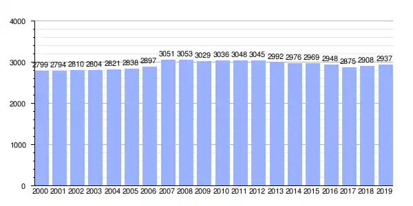 | Gráfica de evolución demográfica de Padrón (lugar) entre 2000 y 2019 |