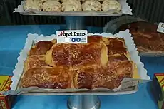 La napolitana es un famoso producto de pastelería y un tipo de bollo, perteneciente a las viennoiseries. Se trata de un relleno de chocolate o crema pastelera envuelto en una masa de hojaldre hecha con la misma masa que los croissants, lo que le da su forma rectangular y aplastada. La napolitana está a veces recubierta de almendras tostadas por encima. La cultura popular siempre las ha llamado así, pero no está claro su origen napolitano, ya que en la gran mayoría de los idiomas el relleno de este característico dulce es una barra de chocolate, por lo que se conoce como pain au chocolat, dando referencias francesas de su verdadero origen. Asimismo, en parte de Navarra y el País Vasco, a las napolitanas se les conoce como «garrotes». La más común se le conoce como napolitana de chocolate o top de chocolate.