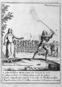 ![]() Mapuches jugando palín según la crónica Histórica relación del Reyno de Chile (1646) | ||