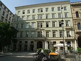 En 1847, el conde imperial Maximiliano Hardegg encargó a los arquitectos Johann Romano y August Schwendenwein que convirtieran el palacio en un palacio de alquiler en el estilo del historicismo temprano. Se trata, pues, de uno de los escasos ejemplos de palacio alquilado en el centro de la ciudad. El edificio predecesor más antiguo, el Admonter Hof, data del siglo XV. En 1572 se convirtió en Palacio Breuner, siguiéndole numerosas familias nobles: Palffy en 1670, Kaunitz en 1694, Metternich en 1797, Esterházy en 1805 y Colloredo-Mansfeld en 182.