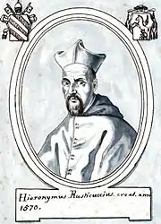 Girolamo Rusticucci, secretario del papa Pío V (r. 1566-1572), quien en 1570 lo nombró cardenal de Santa Susanna, compró un palacio casi al final de la Via Alessandrina (el camino más tarde llamado Borgo Nuovo) en Borgo el 31 de marzo de 1572.[3] Este edificio, una vez propiedad de Roberto Strozzi (exponente de la familia de banqueros de Florencia ), había sido vendido en 1567 al papa Pío V, quien lo donó inmediatamente a su sobrino Paolo Ghislieri.[3] Ghislieri se la vendió al cardenal cinco años después con la aprobación del papa.[3] Para ampliar su edificio, Rusticucci también compró varias casas cercanas.[3]