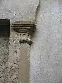 La parte original del edificio, según Lampérez, es de finales del siglo XV, con galería añadida en el siglo XVI, pero a pesar de los elementos gotizantes posiblemente la construcción es de entrado este siglo. De este siglo son también los restos de un patio interior renacentista. Son restos de dos crujías. En la parte baja de la crujía de levante, quedan empotradas en la pared dos columnas con sus capiteles que, a su vez, dada la distancia que queda hasta el cuerpo alto, es de suponer que soportaban una plataforma adintelada sobre la que apeaba la galería superior. Del cuerpo alto quedan las crujías de levante y mediodía, tabicadas y mal conservadas. Son de tramos de arco de medio punto apoyados en delgadas columnillas, que a su vez, se apoyan en pretiles con medallones (no aparecen los medallones con bustos de personajes del antepecho). Sobre la crujía de mediodía, y en posición más retrasada, queda una galería de arquillos de ladrillo, cegados en la actualidad. Conserva restos del alero que tuvo, de claros rasgos gotizantes.