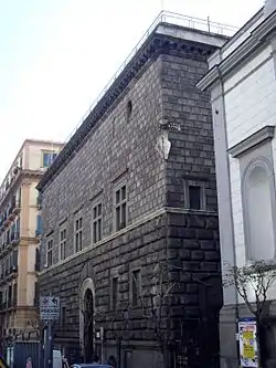 El antiguo palacio era un magnífico ejemplo de la arquitectura renacentista. El proyecto de reconstrucción, encargado a tres arquitectos no napolitanos, condujo a la realización de un edificio de estilo toscano en una tierra donde en esa época, aunque la arquitectura tendía a asumir connotaciones locales, confluían a menudo también tendencias importadas de otras culturas, sobre todo las de matriz toscana: este es el caso de los coetáneos palacios Orsini di Gravina, Diomede Carafa y del Panormita.[11] En este sentido, en una visita a Nápoles realizada en 1879, el historiador de arte Gustavo Fizzoni describió el palacio de la siguiente manera:[11] «de repente se ofrece a la vista la imponente mole de un palacio de sillares rústicos y de un estilo que recuerda a la mente los característicos palacios de Florencia y Siena».