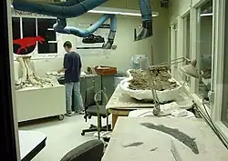- Búsqueda de pistas: Los rocas de los alrededores se examinan en busca de restos de huesos que hayan podido fragmentarse del esqueleto completo, o quizá de otro dinosaurio fósil enterrado en las cercanías.
