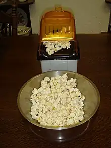 Los palomiteros pueden ser bastante grandes, para usarlos en cines o ferias, o pequeños electrodomésticos.[4] Las palomitas al estilo del cine pueden hacerse fácilmente en casa usando sal con mantequilla.
