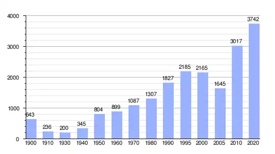 | Gráfica de evolución demográfica de Panales entre 1900 y 2020 |