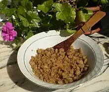 Para preparar este plato se elabora un bollo especial con harina de escanda, o de mezcla de escanda y trigo, que se llama pancha. Después se desmigaja el bollo y se mezcla con manteca blanda y azúcar o miel[1].