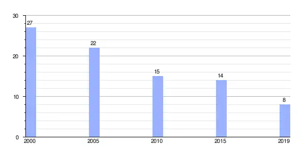 | Gráfica de evolución demográfica de Pando (parroquia) entre 2000 y 2019 |
