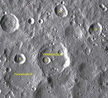 Por convención estos elementos son identificados en los mapas lunares poniendo la letra en el lado del punto medio del cráter que está más cercano a Pannekoek.