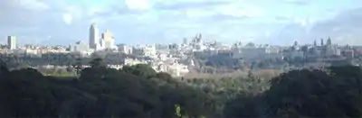 El valle del río Manzanares facilita una panorámica del centro histórico de la capital, que se encuentra entre las más características del horizonte madrileño. El casco viejo se extiende alrededor de varias colinas, a cuyos pies se hallan diferentes barrancos (hoy suavizados tras sucesivas nivelaciones), que permiten divisar algunas de las edificaciones de mayor interés artístico de Madrid.